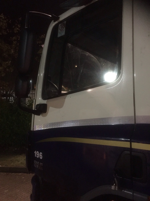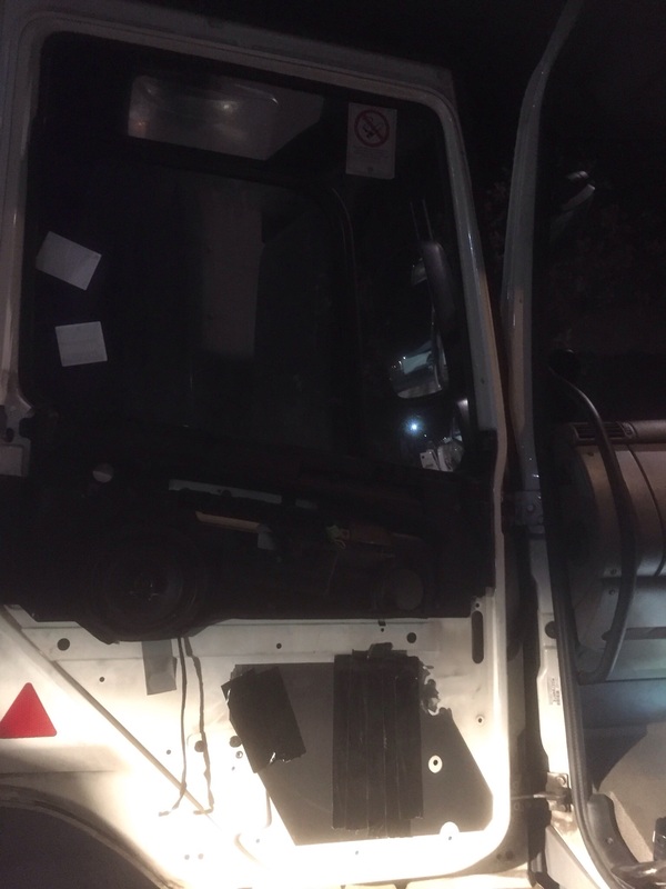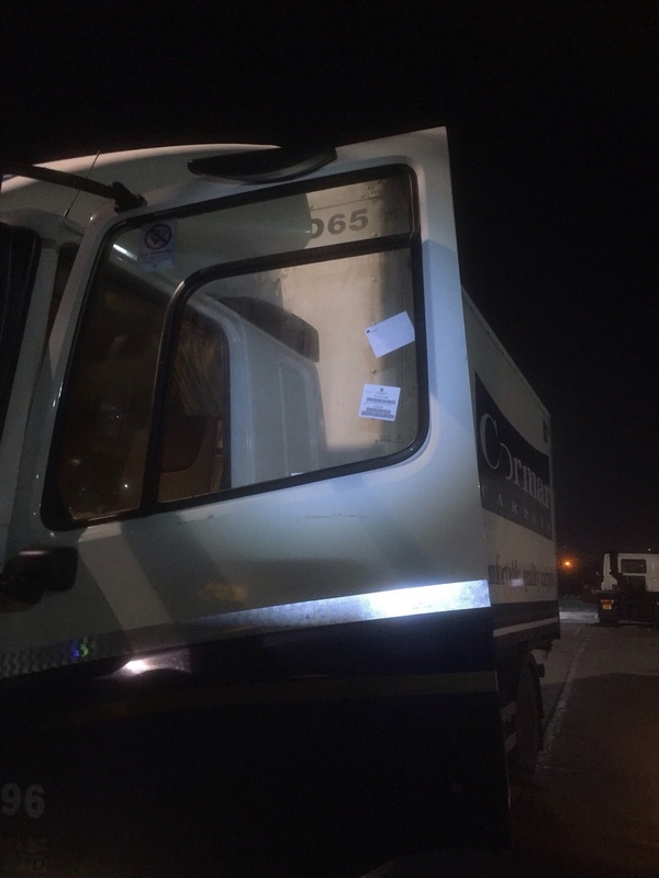 We were called to replace a left door glass on a Daf cf because the mirror had caught a tree and broke the glass this was no problem for Kwik Fix Windscreens we attended at 18.30 to get this repaired ready for the morning another happy customer